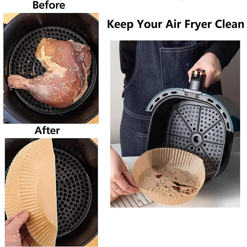 Use the 9 inch air fryer liners for baking, roasting, and frying. Place one in your basket, add your food, and cook as usual. Your pastries, chicken, or vegetables come out perfectly, without messes left behind. Each piece holds its shape, even with moisture or grease.