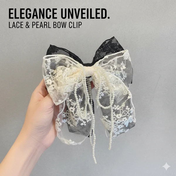 This product has multiple variants. The options may be chosen on the product pageElegant Lace Bow Hair Clip with Pearl Ribbon